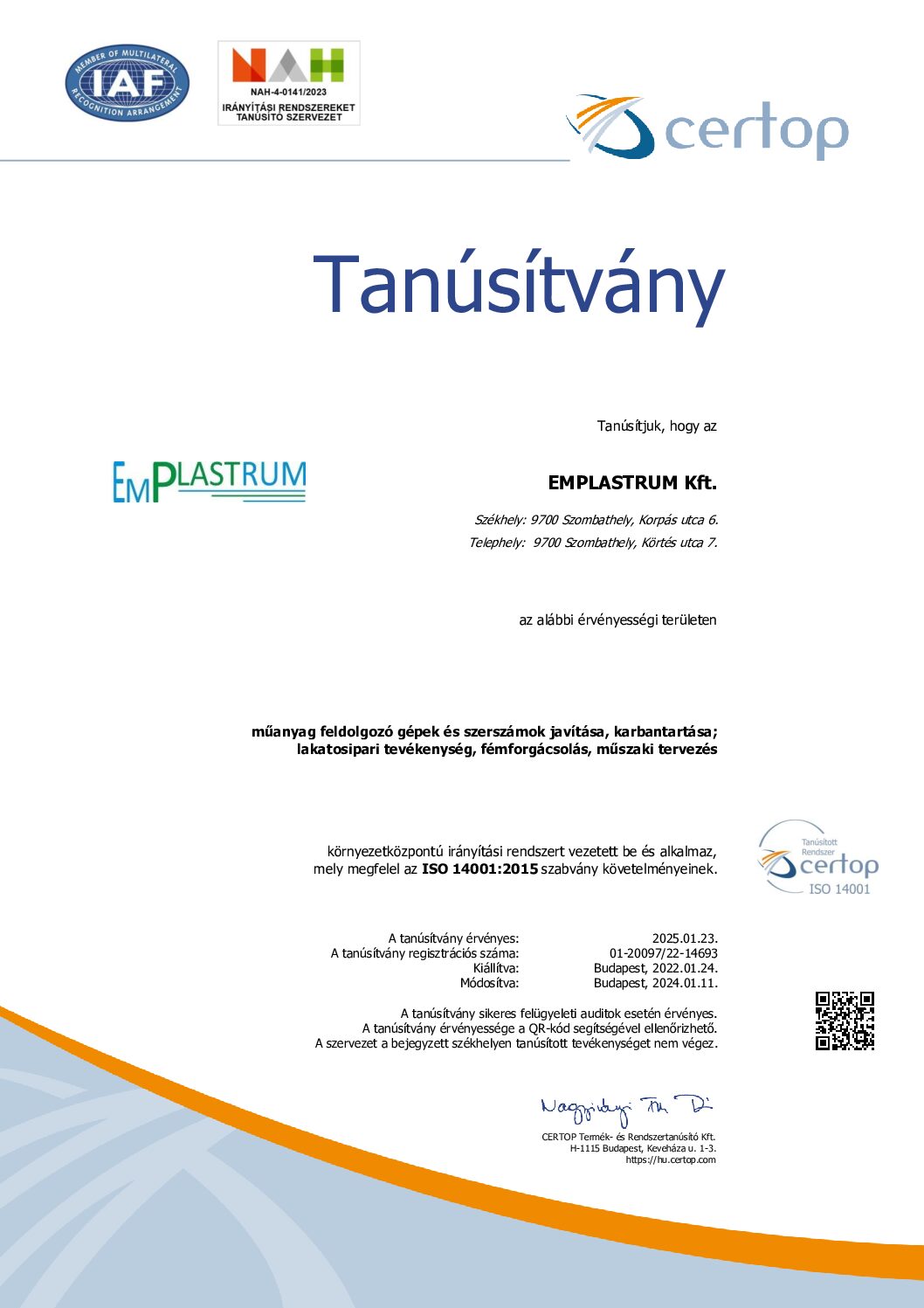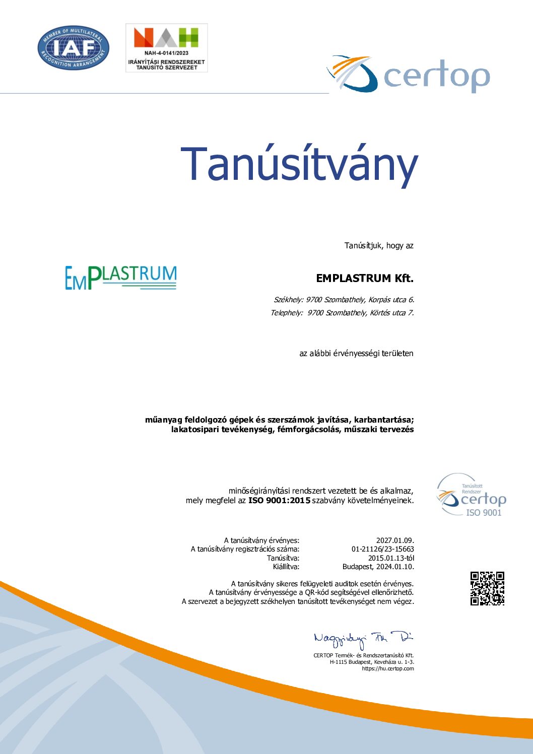 • Tanúsítványok